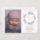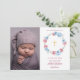 Cartão de Proposta de Padrinho com Coroa Floral. Apresenta uma coroa de peônias em aquarela e foto de bebê. Itens correspondentes disponíveis.