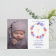 Cartão de Proposta de Padrinho com Coroa Floral. Apresenta uma coroa de peônias em aquarela e foto de bebê. Itens combinando disponíveis.