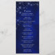 Este cartão do programa de casamento mostra uma galáxia noturna estrelada de prata brilhando contra um fundo azul de gradiente profundo. Há muito espaço para seu texto personalizado, também em cinzas prateadas. Se precisar alterar a fonte, o tamanho, o local ou a cor do texto, use Personalizar. A parte de trás do convite é o mesmo azul de gradiente profundo.