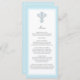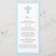 Uma cruz elegante desenhada com caracóis giratórios e rico de pulgas de padrões, coordena-se perfeitamente com os nossos convites para batismo, comunhão e confirmação. Cada linha pode ser personalizada para o seu menu. O design azul Bonito também está disponível em autocolantes e cartazes.