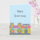 Cartões caprichosos de "Feliz Aniversário de Casa" para marketing de imóveis. O design apresenta um bairro urbano fofo em um fundo azul claro. Perfeito para corretores de imóveis residenciais, credores hipotecários, agências de títulos, serviços de inspeção de casas, etc.