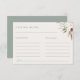 Cartão de Receita do Chá de panela Floral Bohemian. Flores aquarelas do estilo Boho, capim de pampas e delicada fuselagem verde em fundo verde bege e sábio.