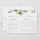 Cartão de Receita de Limão de Cores Aquáticas Botânicas para abeberamento da Boca. Cartão de receita bonito e elegante com ilustrações aquáticas de limões de citrinos, flores brancas delicadas e folhagem verde pintada à mão. Perfeito para chás de panela e uma maneira perfeita de manter suas melhores receitas!