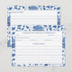 Design de cartão de receita decorado com um padrão floral azul e branco pintado à mão, inspirado no tipo visto em antigos potes de gengibre azuis e brancos.