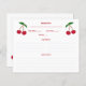 Um cartão de receita em tons vermelhos com uma ilustração das cerejas e suas folhas verdes é perfeito para compartilhar suas receitas favoritas caseiras (como compota, sorvete, bolo, torta, etc.) com a família e os amigos. Você também poderia usá-lo em um chá de panela!