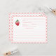 Design de cartão de receita adornado com um único morango doce e uma borda em um padrão vichy rosa e branco. Tenho convites e outros materiais de papelaria no mesmo tema de morango.