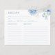 Cartão de Receita de Chá de Noiva Floral Azul Eleg