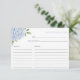 Este lindo cartão de receita apresenta flores de hortênsia com seu texto personalizado.