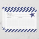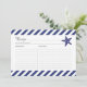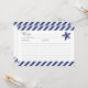 Cartão de recepção com design de peixe-estrela náutico e fundo de faixas azuis marinho.