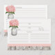 Cartão de receita de estilo rústico com jarra de mason monogramada com uma flor de hortênsia rosa e uma cerca de madeira e fundo de renda com padrão damasco antigo e fita rosa costurada. Estes cartões de receita podem ser personalizados com as iniciais e monograma dos noivos na jarra de mason. São o complemento perfeito para um casamento country, de fazenda, festa de jardim ou chá de panela de casal com estilo de celeiro. Criado por Chrissy H. Studios, LLC.