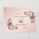Crie um belo cartão de receita para a noiva com rosas rosa e verdejante emoldurando os detalhes da receita. Cartão de receita floral rosa e dourado. Personalize facilmente online.