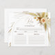 Cartão de receita de chá de panela. Coleção Chic Pampas Grass Boho. Lindas gramíneas de folhagem modernas. A aquarela botânica tornará seu feriado único em qualquer época do ano. Primavera ideal, verão, outono, outono ou tema casamento no inverno.