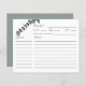 Cartão de receita moderno para o seu chá de panela de eucalipto com ilustração aquosa das folhas botânicas. Peça aos seus hóspedes para preencherem este cartão de receita e levá-los à noiva ou ao chá de casamento.