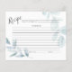 CARTÃO DE RECEITA | Folhas de eucalipto aquarela em tons de azul empoeirado. O verso é uma cor coordenada complementar. Personalize o texto, estilo de fonte, cor e tamanho. Arte original criada para o BarefootBride™ por © WhimsicalArtwork™ - Esta é parte de uma Suite de Papelaria de Casamento completa com papelaria de casamento, chá de bebê e outros eventos.