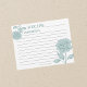 Cartão de receita de peônia azul. Localize o Binder de Receita Personalizada correspondente AQUI: https://www.zazzle.com/personalized_blue_floral_vintage_recipe_binder-256448116321038340