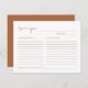 Esta placa de receitas apresenta fontes manuscritas e um design moderno minimalista, aliado a uma combinação de ferrugem e cor branca. As cores são editáveis! Clique na opção 'clicar para personalizar mais' para alterar as cores para que correspondam ao seu tema. Este cartão de receita é a adição perfeita à sua cozinha boho ou faz uma atividade de excelente para um chá de panela.