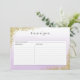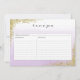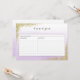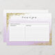 Cartão de receita com design de brilho dourado e fundo de aquarela lavanda roxa ombre.