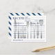 Um cartão com linhas azuis, listras colocadas sobre a superfície branca com receita retrô personalizada de fundo no cartão-postal frontal. Ele é personalizado com seu nome e nome iniciais.