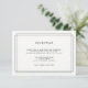 Elegante e simples cartão de recepção de casamento com um toque sofisticado em preto e branco apresenta uma borda geométrica que enquadra os detalhes da recepção em letras clássicas. Personalize com o horário da recepção, local, endereço e outros detalhes importantes, como transporte. Projetado para combinar com nossa coleção de convites de casamento Atemporal.