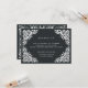 Projetado para coordenar com a nossa coleção de casamento Beaux Arts, este cartão de recepção elegante apresenta um papel picado fronteira branca moldando os detalhes da sua recepção de casamento, o momento e o endereço num fundo negro de carvão.