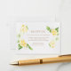 Nossa coleção ''Lemon Tree Destination Wedding'' apresenta ilustrações de limão e ramificação de árvore de aquarelas em conjunto com fontes elegantes facilmente personalizáveis nas quais todas as suas informações são escritas. Esta coleção tem algumas opções de cor de fundo; azul escuro, preto e branco. Veja na nossa loja mais itens correspondentes perfeitos para um casamento de verão ou destino.