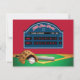 Se você está planejando um Bar Mitzvah com tema de beisebol e precisa de um cartão separado para recepção ou detalhes da festa, então este convite divertido "All Star Field" pode ser exatamente o que você está procurando. A frente apresenta um grande placar azul e branco em um fundo vermelho com uma imagem de um diamante de beisebol verde abaixo. Há também uma luva de beisebol, uma bola de beisebol vermelha e branca e um taco deitado ao longo da parte inferior esquerda. Há uma pequena Estrela de David azul abaixo do nome decorativo em vermelho e branco do campo no placar e o nome e estatísticas do Bar Mitzvah estão em branco e as pontuações da casa e dos convidados para as nove entradas estão em vermelho. As cores da parte de trás são vermelho, branco e azul com uma grande silhueta preta de um jogador de beisebol que acabou de terminar sua rebatida. Os detalhes da festa e/ou outras informações são impressos em branco. Este cartão combina com a coleção de Bar Mitzvah com tema de beisebol abaixo. Se você precisar