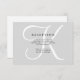 Esses cartões de inserção de informações de recepção de casamento elegantes exibem seu monograma em texto grande e moderno colorido de branco em um fundo cinza suave.