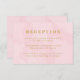 Este cartão de recepção de casamento moderno apresenta uma suave lavagem de aquarela rosa nas bordas e tipo de ouro clássico.