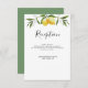 Este cartão de informações de recepção tem um tema verde de verão com limões em aquarela e folhagem verde. As cores e o texto podem ser editados.