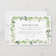 Nosso cartão de recepção de casamento botânico elegante apresenta folhagem pintada em aquarela em tons vibrantes de primavera e verde musgo na borda do cartão. Personalize o design adicionando os detalhes da sua recepção de casamento. Projetado para combinar com nossa coleção de casamento Watercolor Greenery.