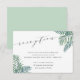Use estes cartões de recepção elegantes para o seu casamento de verão, destino ou praia. O design elegante e estival apresenta folhas de palmeira tropicais em aquarela verde, com os detalhes da recepção do seu casamento em uma mistura elegante de caligrafia, serifa e tipografia itálica. Os cartões são verdes pastel sólido no verso para um visual tropical chic.