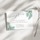 Use estes elegantes cartões de inclusão de recepção para o seu casamento de verão, destino ou praia. O design elegante e estival apresenta folhas de palmeira tropicais em aquarela verde, com os detalhes da recepção do seu casamento em uma mistura elegante de caligrafia, serifa e tipografia itálica. Os cartões são impressos no verso em verde mar pastel sólido para um visual tropical chique.