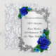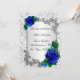Lindas rosas azuis e padrão de folha prateada. Este lindo cartão de recepção está pronto para ser personalizado para o seu dia especial de casamento. Personalize o cartão alterando o texto nos campos fornecidos na frente e no verso. Você pode alterar o estilo da fonte, tamanho e cor, bem como o tipo e estilo de papel.