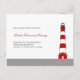 Cartão de recepção de casamento moderno e elegante. Apresenta um farol tradicional em preto, vermelho e branco com uma borda cinza na parte inferior. Ótimo para um casamento a ser celebrado em um farol, praia, costa, mar ou local histórico. Use-o para um grande evento ou uma cerimônia íntima. CONTATE “MARLENEDESIGNER” SE DESEJA ALTERAR A COR OU O TEXTO DESTE DESIGN.
