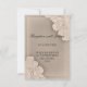 Este cartão de recepção de casamento rústico com flores de carvalho em relevo e borda damasco faz parte de um conjunto completo.