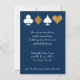 Este cartão de informação adicional para convite de casamento é perfeito para uma celebração em Las Vegas, festa ou recepção e apresenta brilho dourado falso e símbolos de naipe de cartas brancas em um fundo azul-marinho com texto totalmente personalizado. Casamento sofisticado ou um simples casamento às escondidas, tudo o que você precisa é amor e uma ou duas testemunhas!