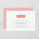 Elegantes, sofisticados e modernos, estes cartões de inserção de recepção de casamento apresentam "Recepção" definido em um elemento retangular em coral vibrante e estival. Adicione os detalhes da recepção, como horário, local e endereço. Os cartões têm no verso um padrão opcional de chave grega moderna em coral e branco.