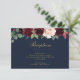 Um cartão de informações de recepção de casamento com um design floral de cor d'água de marinho burgundy e texto personalizado.