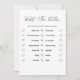 Elevem a sua recepção de casamento com o nosso Cartão Moderno Minimalista de Jogos Caseiros - a adição perfeita a uma elegante celebração contemporânea. Projetada com linhas elegantes e uma estética limpa e minimalista, esta placa de jogo se mistura sem esforço com qualquer decoração moderna, fazer-a uma maneira na moda, mas divertida de entreter convidados. A carta oferece jogos engajados como o Wedding Bingo, Find the Guest, e Words of Wisdom, encorajando interação e riso entre amigos e família. Impresso em um estoque de cartão de qualidade superior com uma escolha de tons clássicos monocromáticos ou neutros, este cartão de jogo adiciona um toque refinado ao seu evento, criando momentos inesquecíveis que seus convidados apreciarão.