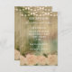 Um convite de casamento rústico elegante com fundo de madeira, rosas cor-de-rosa suaves e uma sequência de luzes. Este convite de casamento faz parte de um conjunto completo.