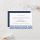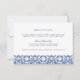 Projetado para combinar com a nossa coleção de convites de casamento Santorini em Lapis, este cartão de recepção elegante no estilo mediterrâneo apresenta uma borda inferior inspirada em azulejos geométricos em azul lapis nítido. Adicione os detalhes da recepção em azul-marinho coordenado, incluindo horário, local, endereço e qualquer informação adicional -- como transporte -- usando os campos fornecidos.