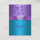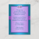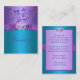 Este cartão de recepção de casamento floral azul roxo e turquesa bonito tem uma fita roxa IMPRESSA e um par de joias de diamante IMPRESSAS e a brilha FAUX juntou corações que combinam com o convite de casamento mostrado abaixo. Você pode usá-lo como um cartão de alojamento ou de instruções, um registro de presentes ou um cartão de poço de desejo, um site de casamento ou um cartão de informação, ou como etiqueta de presente para anexar aos seus favores de casamento. Se você redimensionar o cartão, ou se você alterar as fontes, ou o tamanho da fonte, parte do texto poderá ser cortada. Tudo será impressão como você vê no seu monitor. Não verei o seu cartão, e Zazzle NÃO corrigirá nada (erros de digitação, alinhamento incorreto, etc.). O texto é personalizável. Se precisar de ajuda com este cartão, envie-me um e-mail ANTES de fazer seu pedido. Se você precisar de outros itens correspondentes, envie um e-mail para niteowlstudio@gmail.com.