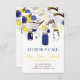 Cartão de Recepção de Jardas Florais Azul e Amarel