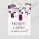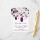 Ilustrações caprichosas de jarras Mason roxas e cordas de corações penduradas em uma árvore com dois pássaros do amor cercados por uma variedade de flores. É perfeito para casamentos de verão, primavera e ao ar livre.