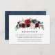 Nossos cartões de recepção de casamento elegantes e sofisticados apresentam um buquê de flores burgundy, rosa desbotado e azul marinho com acentos de folhagem verde exuberante. Personalize o design adicionando os detalhes da sua recepção de casamento. Projetado para coordenar com nossa coleção de casamento Enchanted Floral.