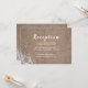 Cartões de recepção de casamento de renda vintage branca elegante e glitter prateado brilhante em juta rústica. ótimo para casamento rústico, casamento em celeiro, casamento no campo e casamento vintage.