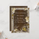 Fundo marrom rústico com rosas brancas e anéis de casamento dourados. Este lindo cartão de recepção está pronto para ser personalizado para o seu dia especial de casamento. Personalize o cartão alterando o texto nos campos fornecidos na frente e no verso. Você pode alterar o estilo, tamanho e cor da fonte, bem como o tipo e estilo de papel.