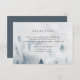 Projetado para coordenar com a nossa coleção de casamentos do Winter Reverie, este elegante cartão de recepção de inverno apresenta uma cena de floresta nevada com pinheiros aquíferos em azul e cinza. Personalize com seus detalhes de recepção de casamento, incluindo horário, local e endereço, em caracteres clássicos fora de preto.