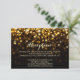 Este cartão de recepção de casamento deslumbrante certamente vai impressionar seus convidados. Recursos de orbes de luz dourada brilhante que desaparecem em um fundo preto sutil. Perfeito para um casamento elegante e sofisticado.
