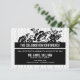 Cartão de recepção moderno e elegante com padrão de bolinhas e detalhes florais. Este cartão de recepção preto e branco faz parte de uma suíte de casamento. Outras cores e itens correspondentes estão disponíveis.